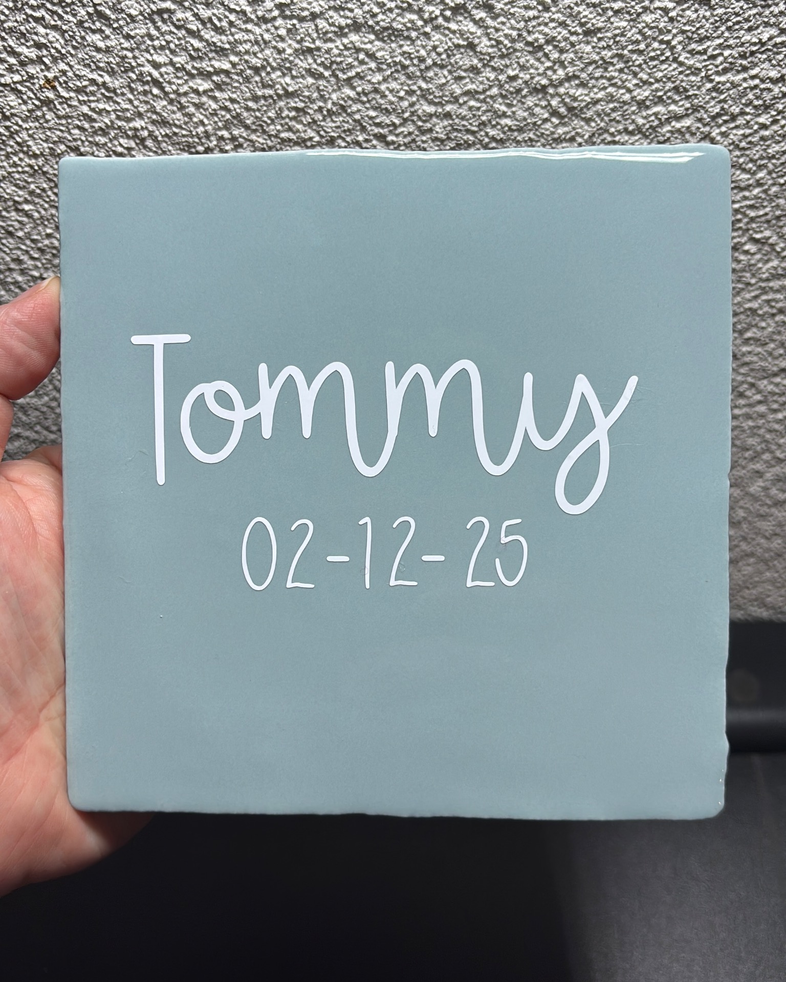 Gepersonaliseerde tegel. Leuk als kraamcadeau. 13x13 cm.