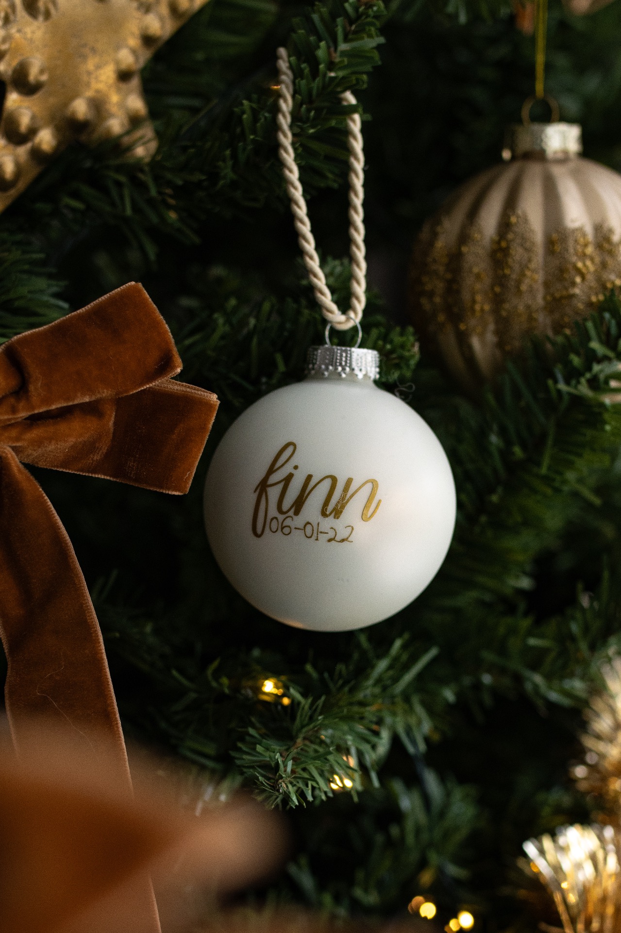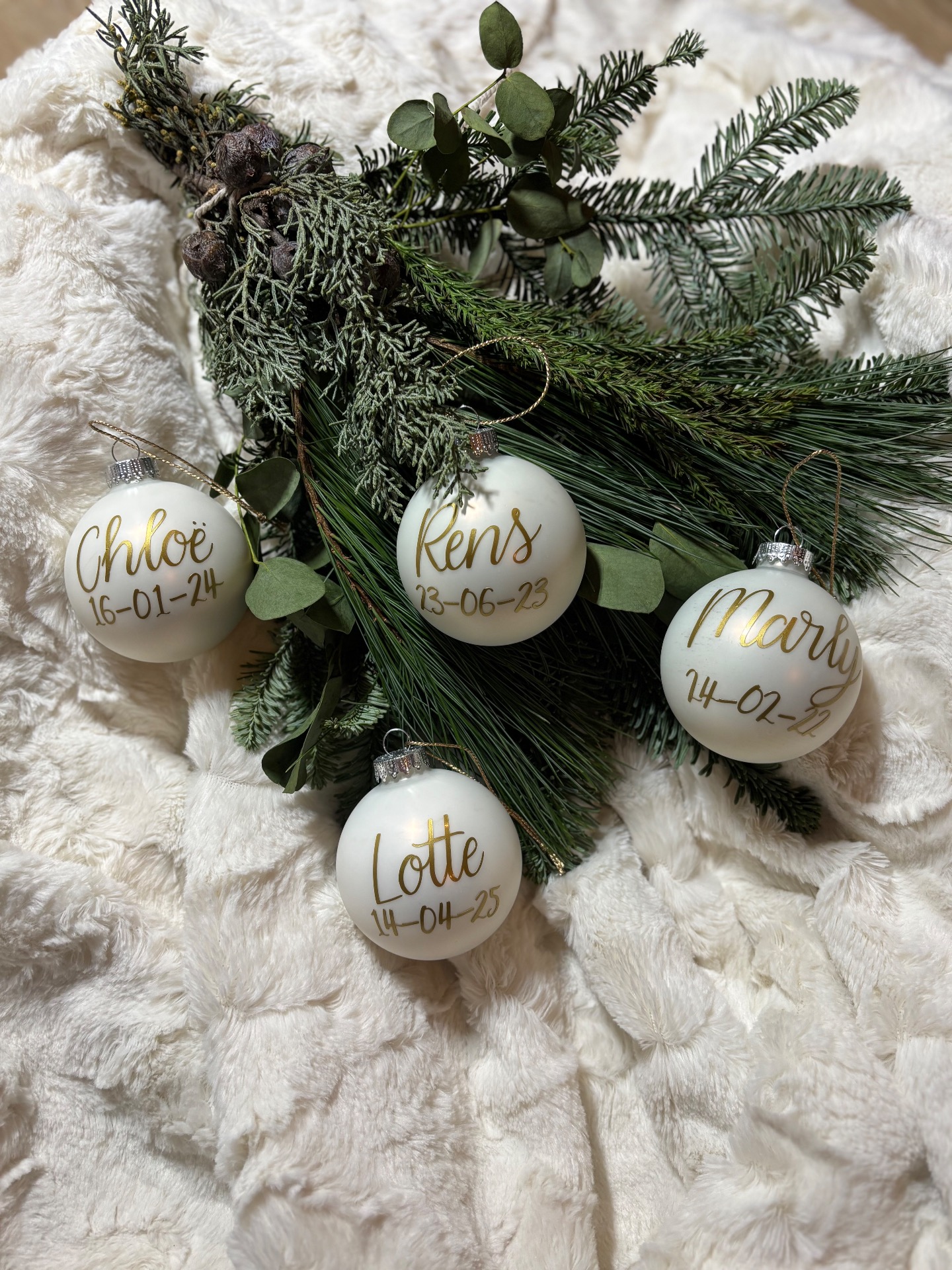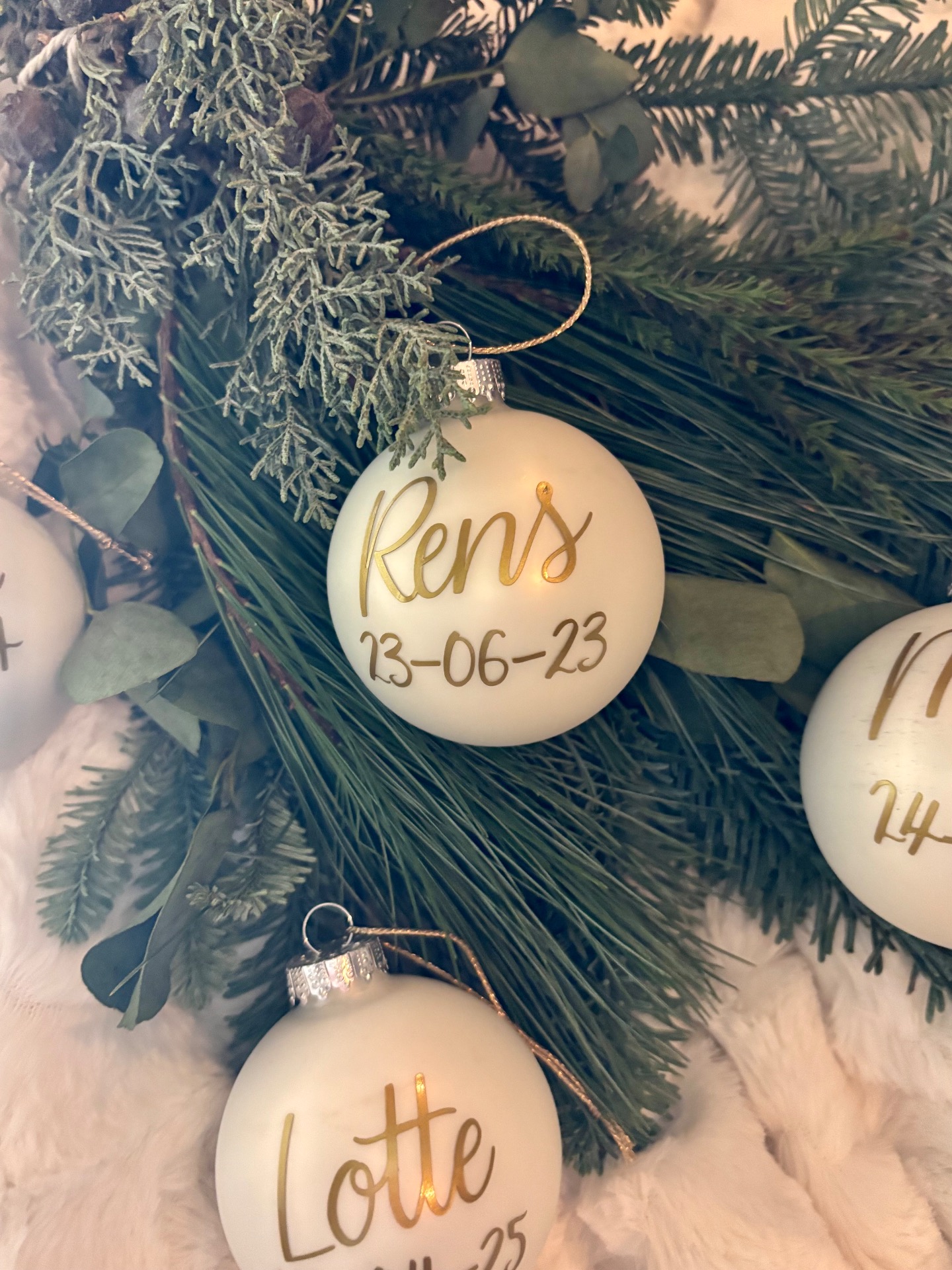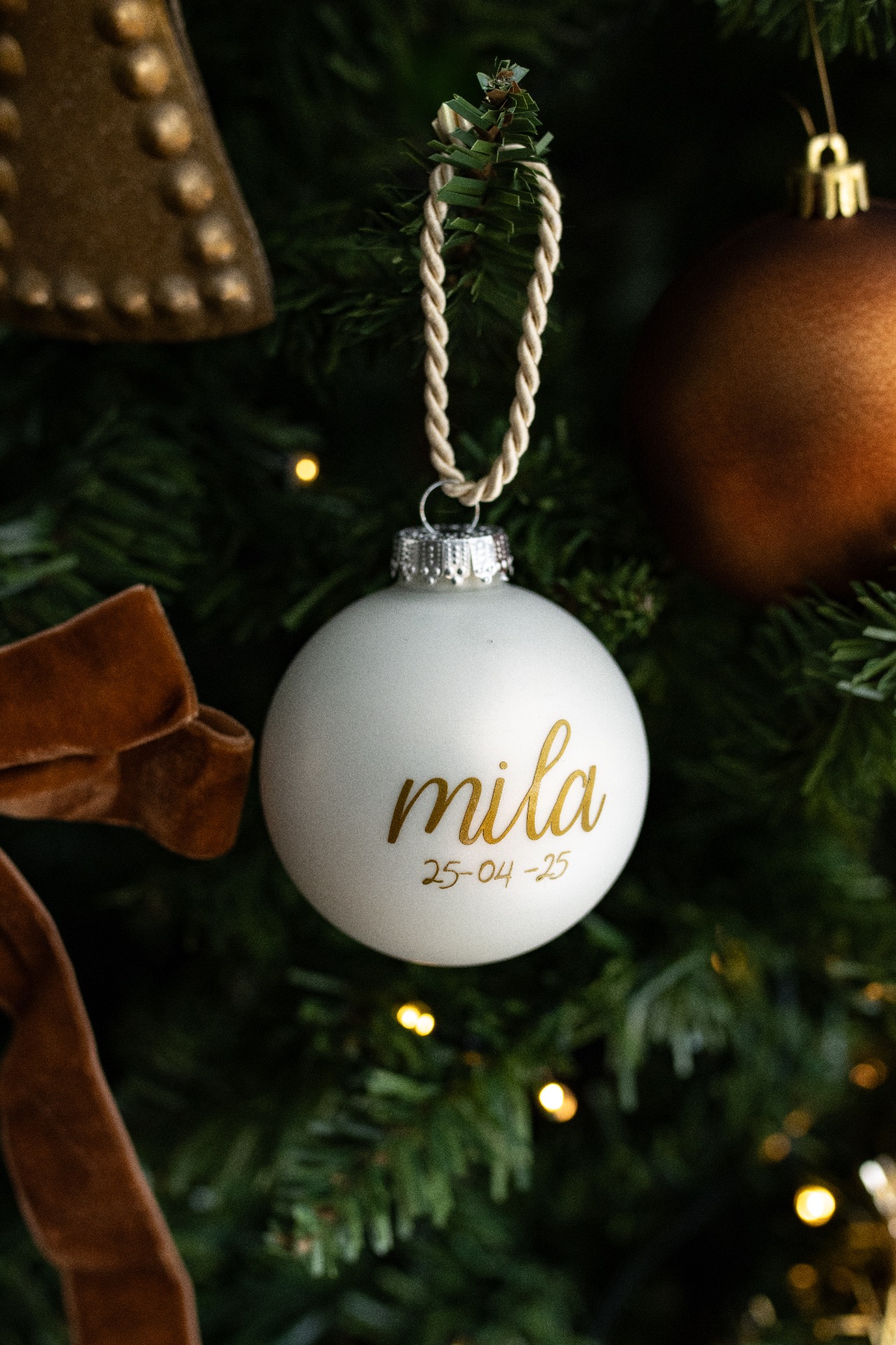 Gepersonaliseerde glazen kerstbal – met naam en datum naar keuze
