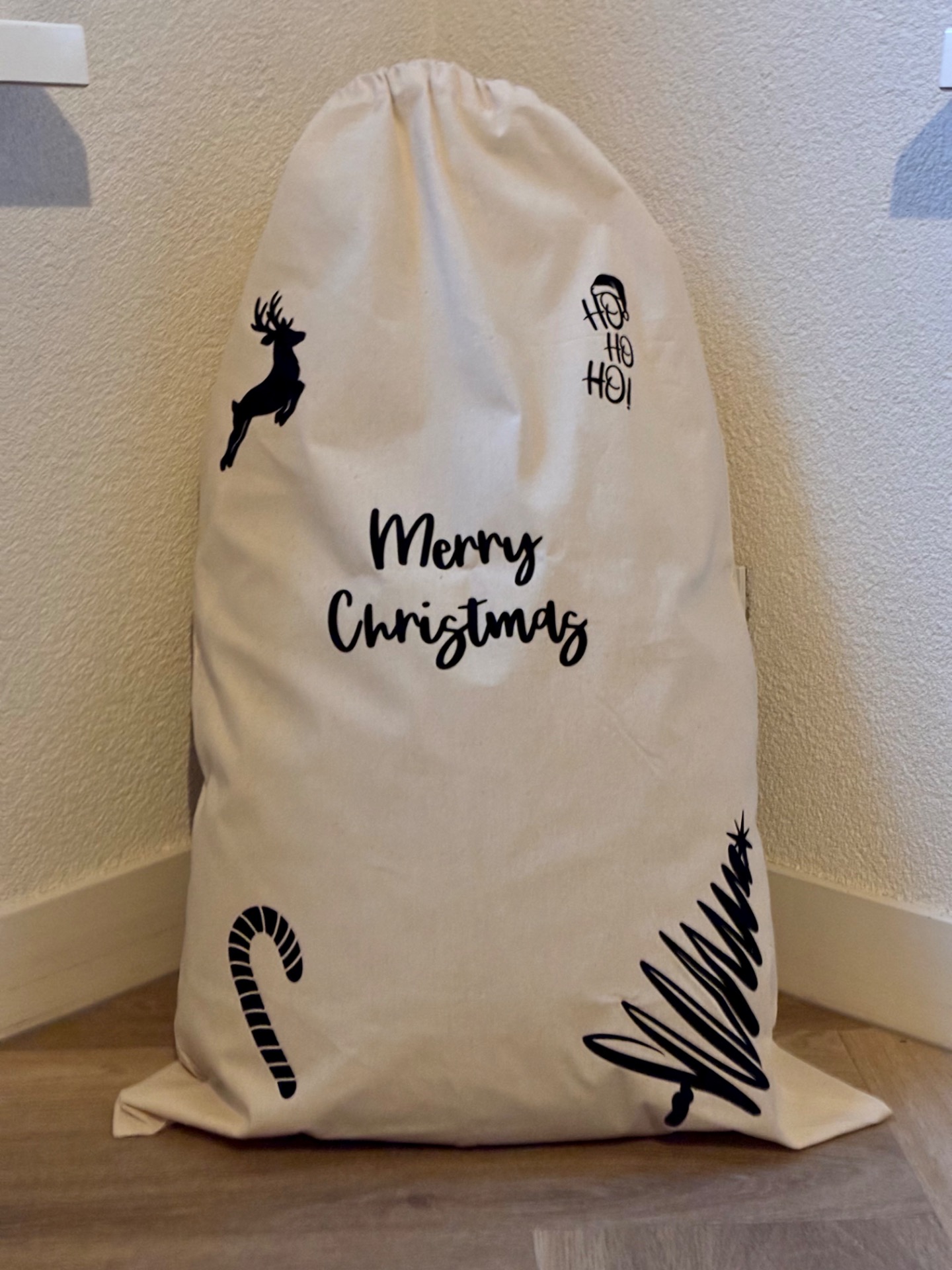 De zak wordt gepersonaliseerd. Dit komt onder Merry Christmas te staan. Bij het doorlopen van het betaalmenu kan je de gewenste naam/namen doorgeven.