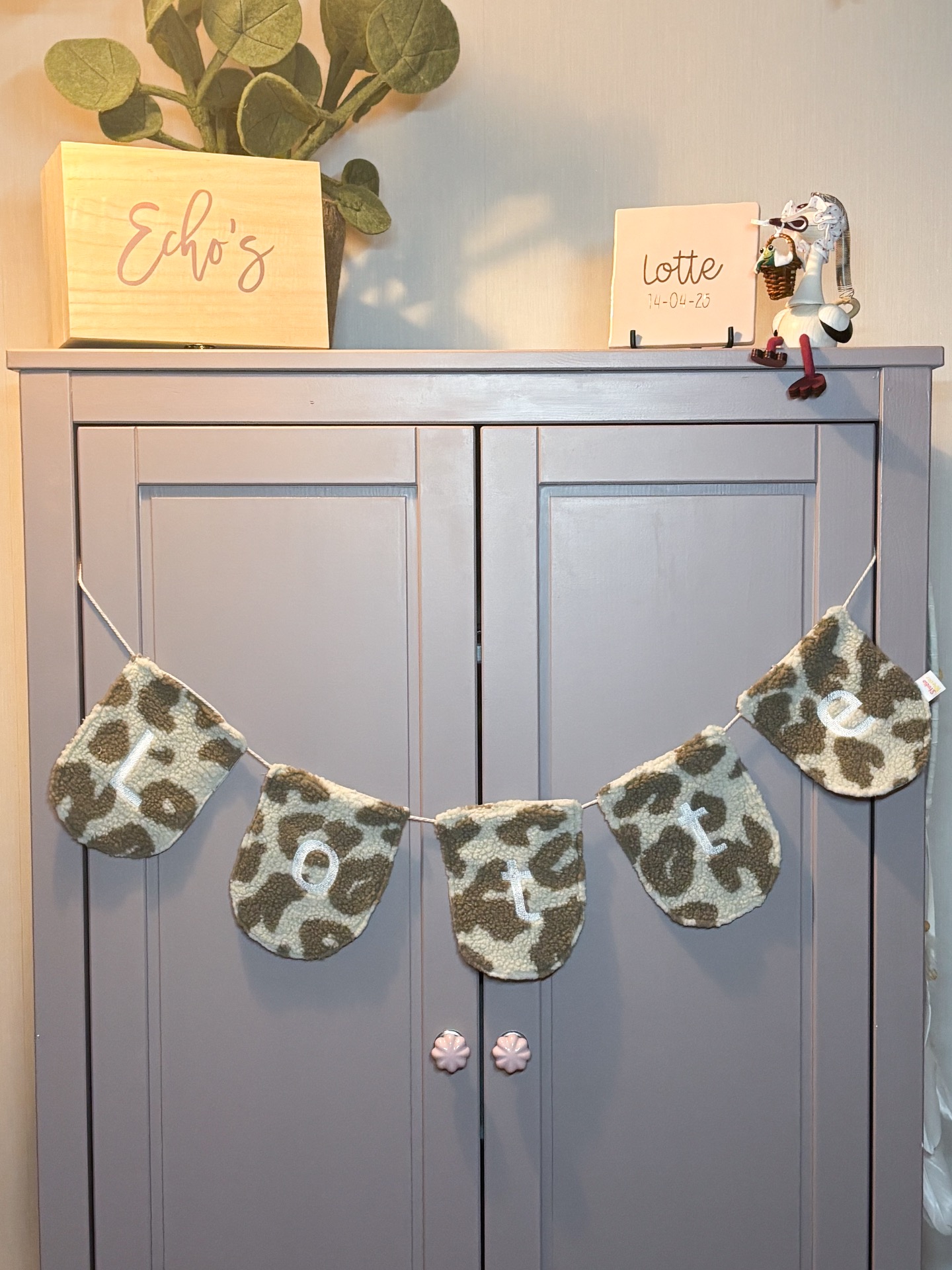 Persoonlijke slinger voor de baby- of kinderkamer - Lichte panterprint